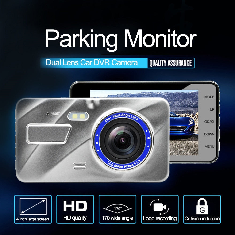 HD 4 Inch Dual Lens Image 1080P Hidden Wide Angle Driving Recorder Dash Cam Dual Lens Car DVR Camera Support Reversing